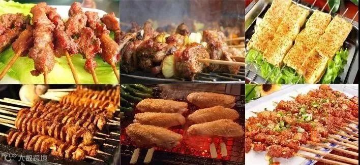 羊肉串、大油边、熟筋、排骨串...