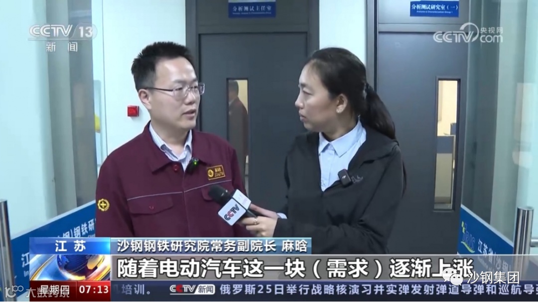 在此前的采访中,央视记者来到沙钢玖隆钢铁物流园、江苏省(沙钢)钢铁研究院、沙钢钢板总厂热处理车间和沙钢长江码头等地,看现场、问数据,实地感受火热的钢铁生产,并与沙钢相关部门负责人深入交流,详细了解企业产品结构升级,高附加值产品研发、销售等情况,掌握鲜活的“第一手”材料。