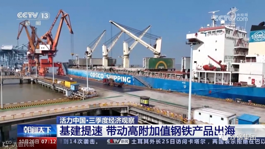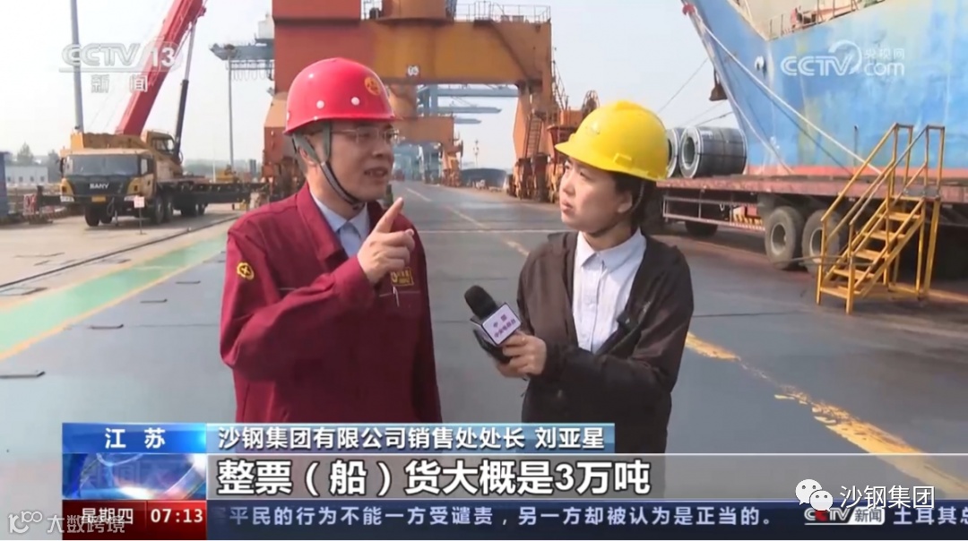 从7:07开始播出,至7:15分结束,长约8分钟的报道展示了沙钢得天独厚的区位优势、先进的工艺技术装备和质量控制体系,以及强大的市场竞争力,更通过实实在在的贸易物流订单、新品开发实践、钢材出口数据等,以点带面、以钢铁带“全局”地展现了我国经济恢复和增长的强大韧劲。