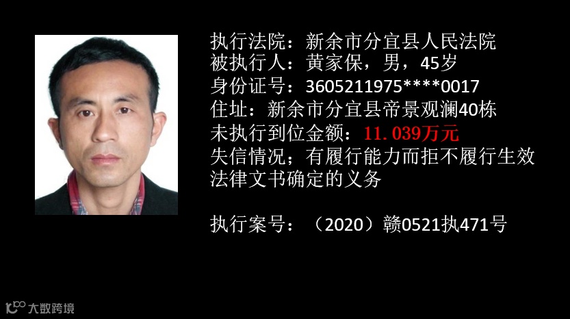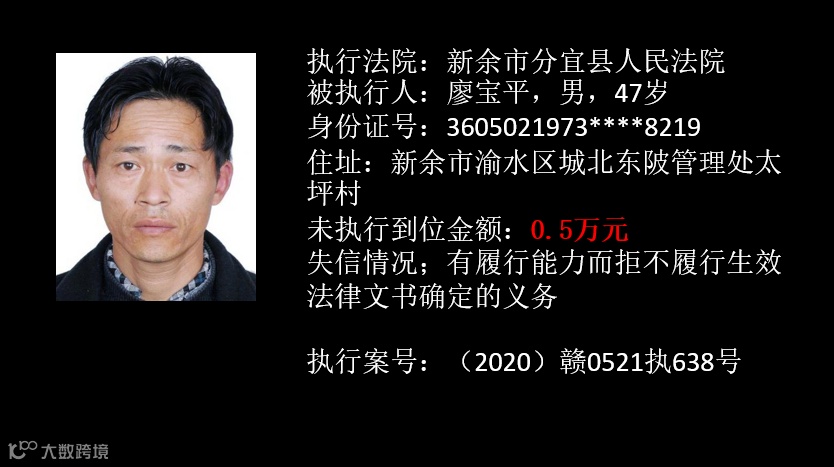名单信息截止日期为2020年9月30日,根据案件结案情况及时更新,相关信息核实请联系新余市中级人民法院或相关执行法院执行局,欢迎广大人民群众举报失信被执行人行踪及财产线索。