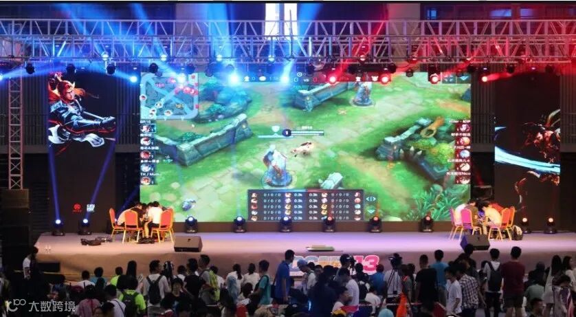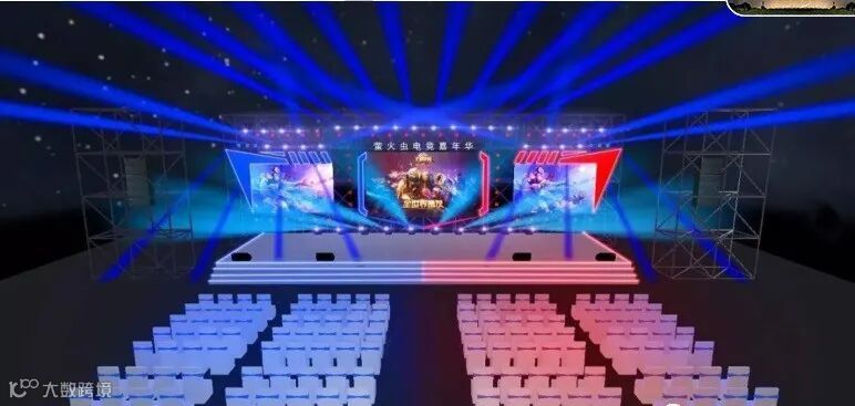 舞台下设观战席,舞台比赛实况由 LED 实时转播,由专业电竞主播解说,游客可观战并与舞台进行弹幕互动。