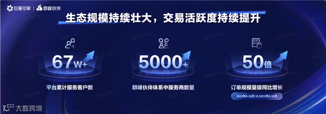 截至目前,群峰伙伴平台累计服务客户数超过67万,在体系中的营销服务商数量超过5000家,2022年平台订单规模增长超过50倍,更多企业主和服务商在群峰伙伴平台找到了生意的新增量。