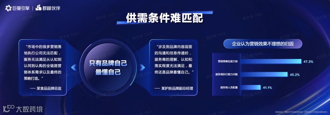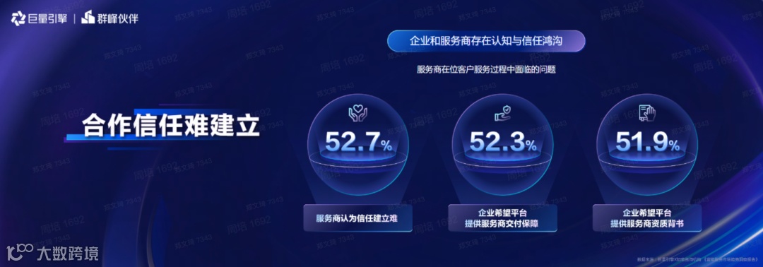 很多企业认为,“只有品牌最懂自己”,在供需的另一侧,52.7%的服务商认为很难与客户建立长期的信任关系;一半以上的受访企业期待群峰伙伴提供服务商交付保障以及服务商资质背书。此外,有超过七成的企业主和服务商认为,双方对于交付标准难以达成共识。