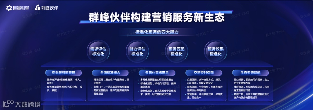 导读:群峰伙伴推出「营销服务标准」 ,在匹配、撮合、售后三个阶段,将标准化贯穿至整个服务链路,用标准化破解营销服务供需难题,让营销快起来!