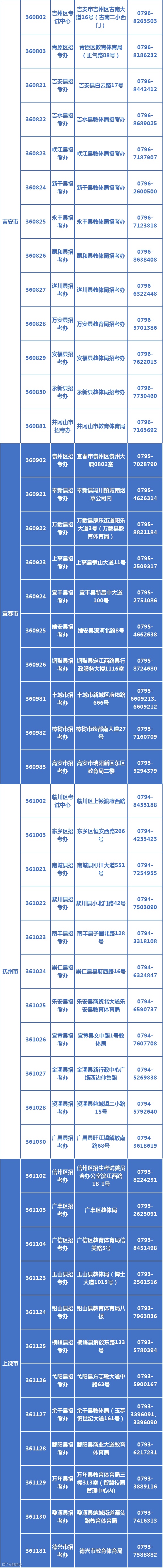 各县(区)招考办联系方式