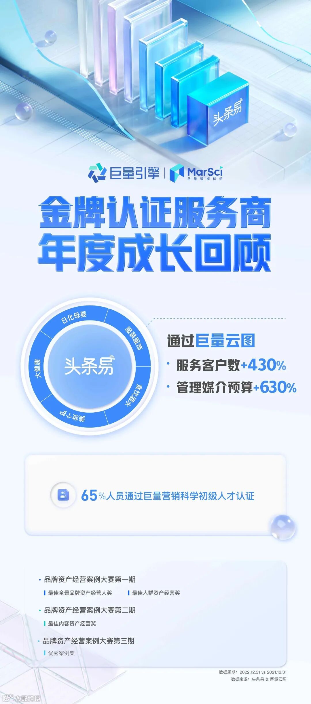 //头条易,在过去一年深耕数据驱动自身媒介业务增长,通过巨量云图服务的媒介预算增长630%,行业覆盖由3个行业拓展至7个;