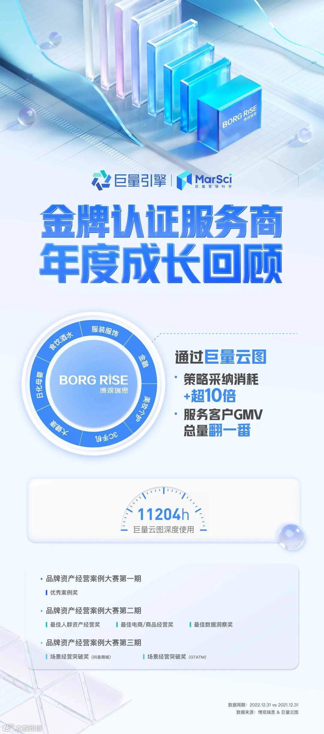 //博观瑞思,在过去一年基于巨量云图,持续串联自身在媒体广告和电商经营双向优势,策略采纳消耗增长10+倍,服务客户GMV总量翻一番;