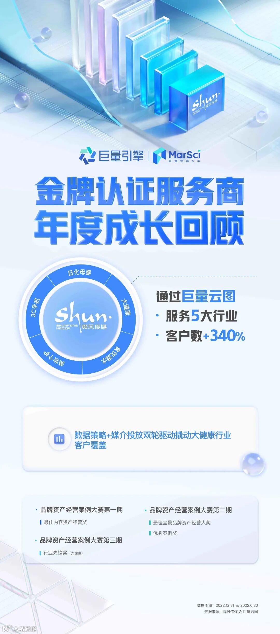从数据来看,使用金牌认证服务商的品牌数量与行业数量都在不断增长:辰月科技增长400%,舜风传媒服务客户数增长340%;A.M.A汽车营销在专精汽车行业的基础上拓展到本地和日化母婴行业,辰月科技在从深耕3C手机行业的基础上拓展日化母婴和服装服饰行业,舜风传媒从电商行业向大健康等更多非电商行业拓展,引力传媒从主要服务美妆行业成功新拓3C、本地赛道。