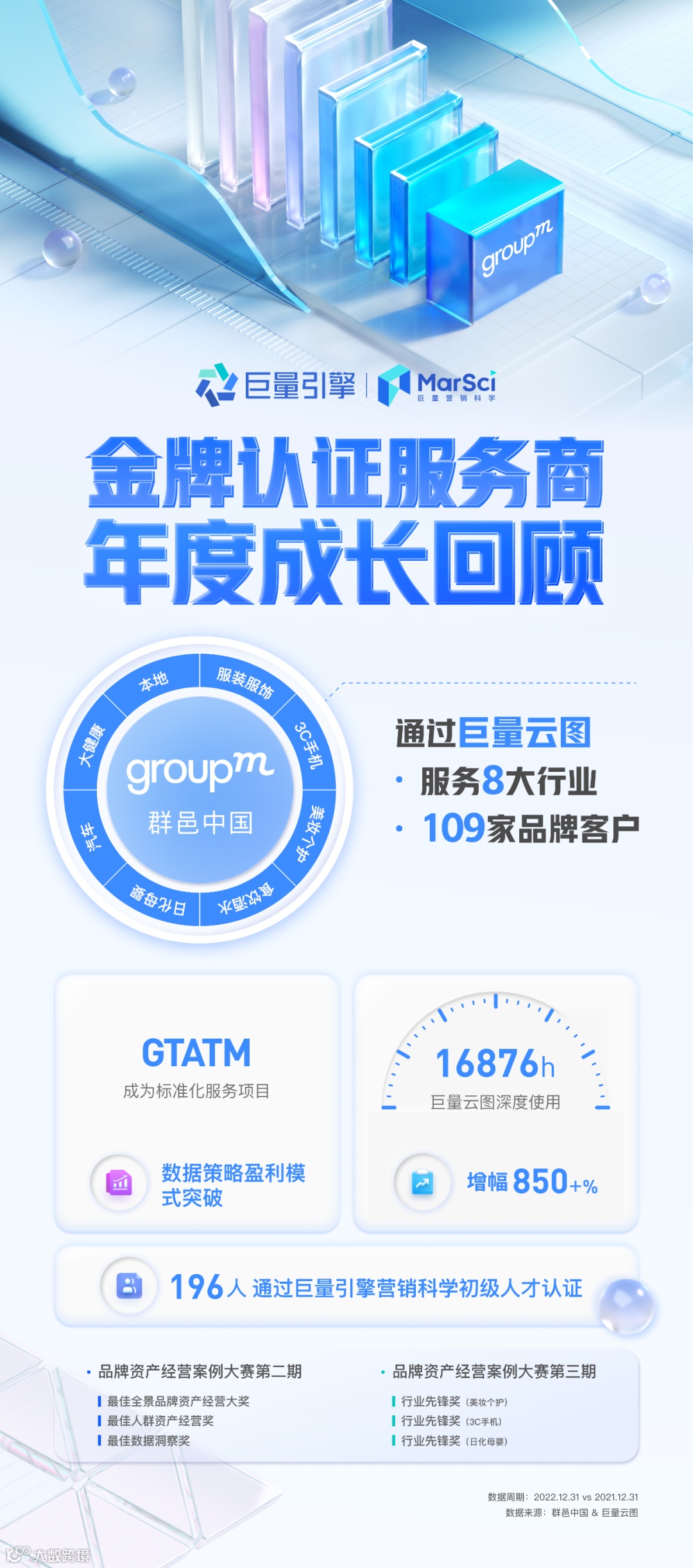 //群邑中国,在过去一年在巨量云图实操和研究上投入16876小时,巩固自身媒体广告优势的同时,实现数据策略服务模式的突破,成功将GTATM(GMV to 5A to Media Plan)打包成标准服务售卖;