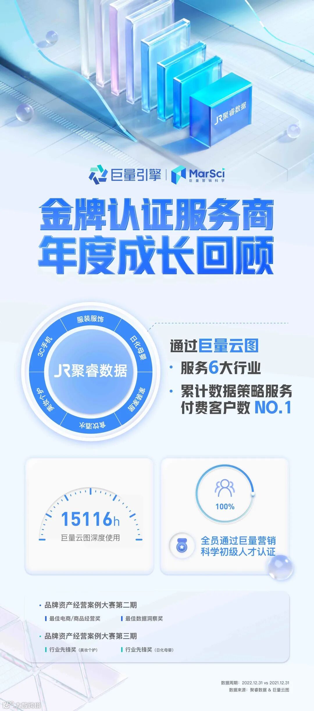//聚睿数据,在过去一年通过巨量云图持续放大自身数据策略优势,累计数据服务付费客户数量居生态NO.1,公司全员通过巨量引擎营销科学初级人才认证;