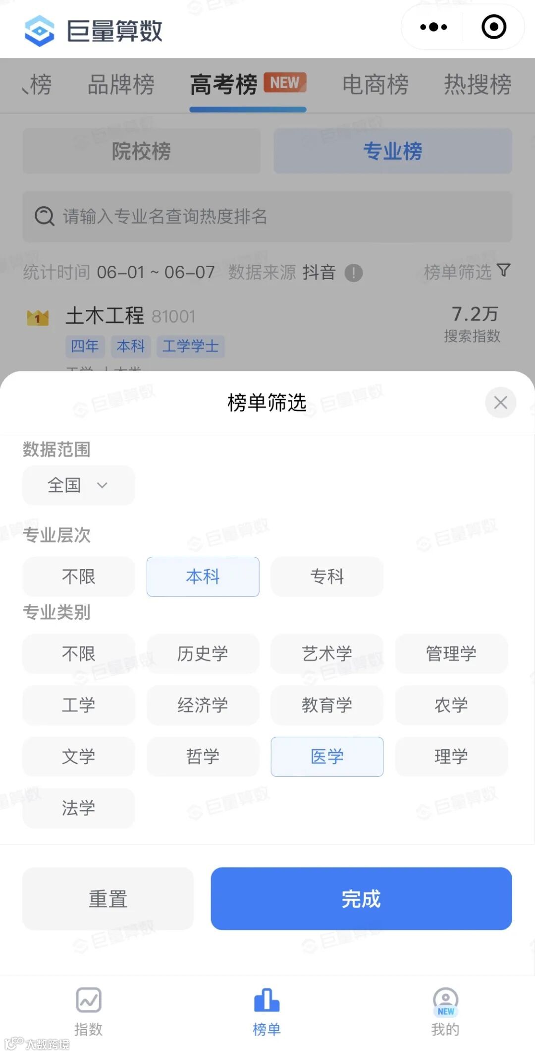 不只是「高考热搜榜单」,作为巨量引擎旗下的内容消费趋势洞察品牌,巨量算数承接了平台先进的数据和技术优势,并依托抖音、今日头条、西瓜视频等内容场景,推出了教育、美妆、日化、服饰、食品饮料、3C 数码等等多个行业的榜单、指数、数据洞察报告和产业研究分析,满足不同用户的需求洞察和分析需求,为之提供全面、牢靠的决策依据,助力商业增长。
