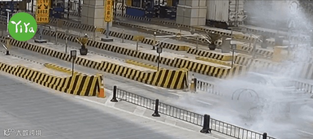 2019年8月30日,浙江金华廿三里收费站,艾某驾驶轿车进入收费通道前,一头撞上入口处的隔离栏,后撞上隔离桩,紧接着车体横着来了一个720°翻转,最后卡在收费通道内。事故发生时,所幸车上三人都系了安全带,并无大碍。