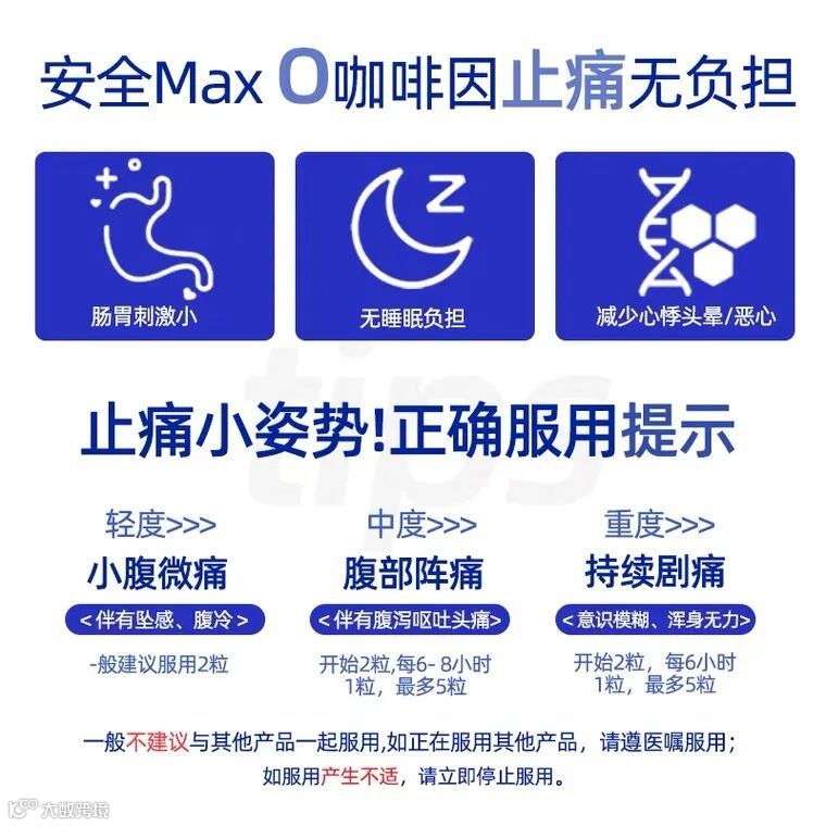 肠胃刺激小,无睡眠负担,减少头晕恶心,随餐服两粒,长时缓痛经。