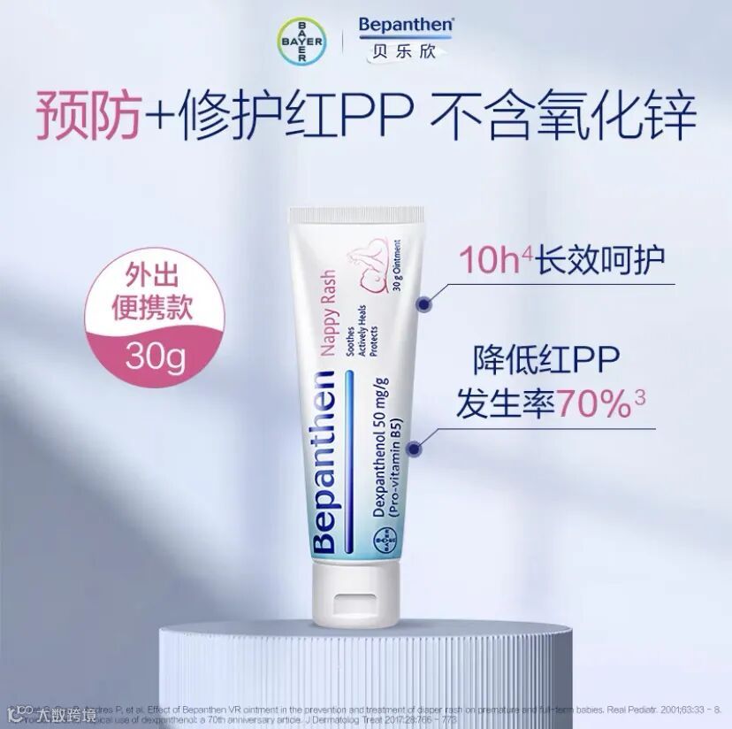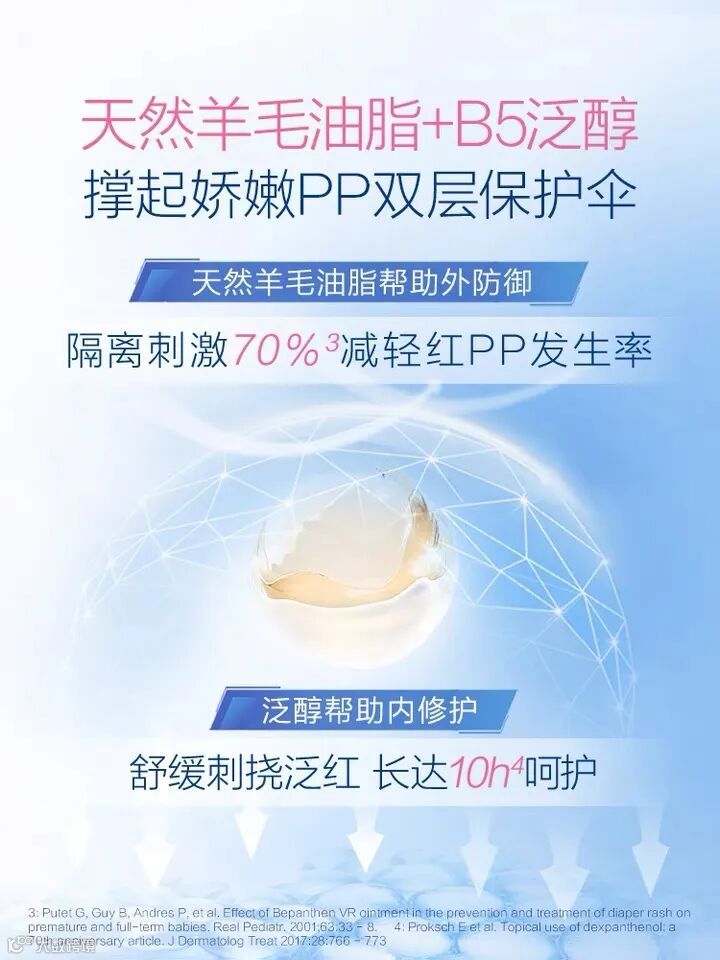 百年拜耳,制药品质,澳洲TGA药监局认证。外部防御:降低红屁屁几率,厚实油润又透气,呵护润滑宝宝肌,不闷PP可呼吸;内部修护:舒缓刺挠泛红,长效呵护肌肤。