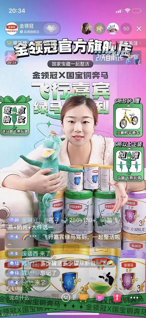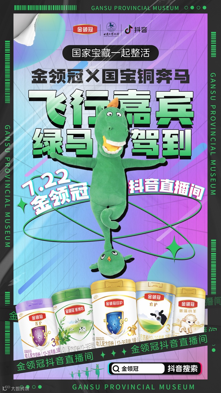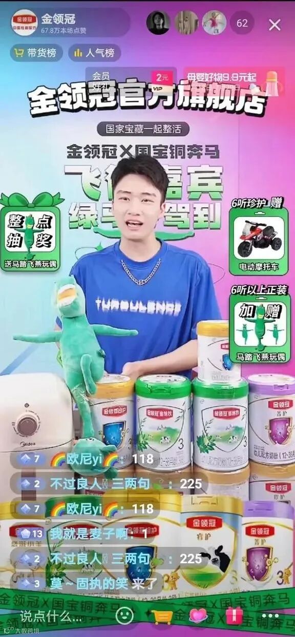 正值暑期,抖音电商母婴行业上线了「抖in亲子囤货节」抖音电商亲子生活IP活动,旨在帮助母婴品牌在“人货场”的加速迭代下玩出新花样,获得销量与声量的双赢。7月22日,伊利金领冠携手甘肃博物馆文创正式合作“马踏飞燕”品牌专场,吸引众多目标人群关注,助力销量提升,收获亮眼成绩。