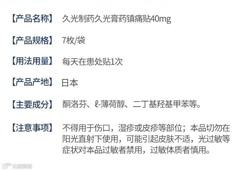 久光制药自1847年进入医药行业,以人类健康为宗旨,主打镇痛消炎贴剂,不断提供新的医疗功效。这款镇痛贴作为其出色产品之一,早已风靡日本,成为家家户户必备的神器。