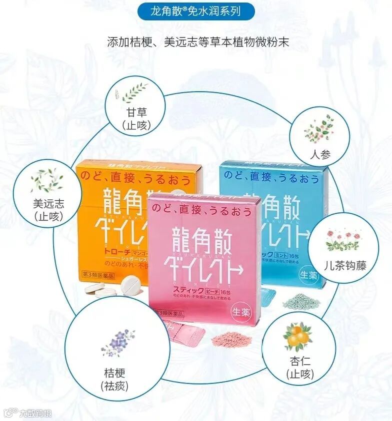 近期温度持续攀升,伴随着呼吸,空气中大量的灰尘、细菌附着于咽喉黏膜上,导致很多人感觉喉咙不适,这款龙角散无需用水、入口即化、迅速滋润,随时随地呵护咽喉。