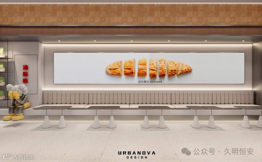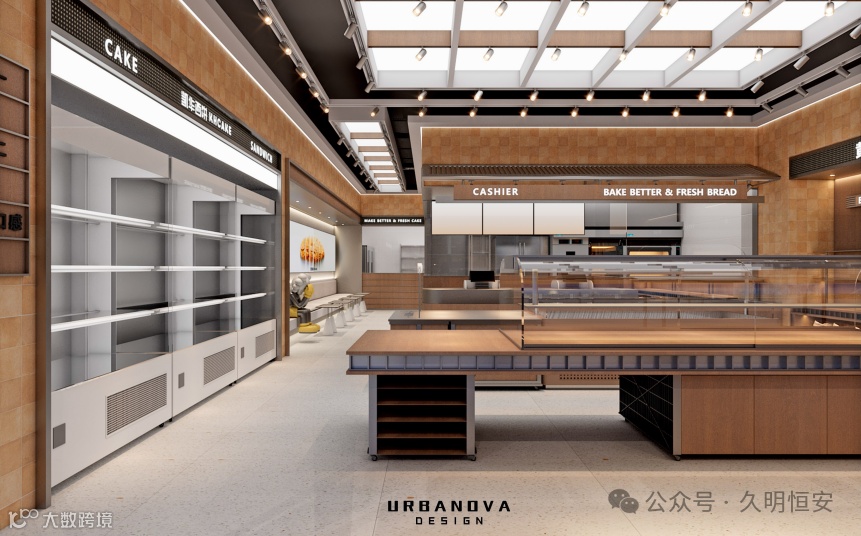 以温暖的色调为主,营造出温馨舒适的氛围。这种色调与烘焙食品的暖色调相得益彰,能激发顾客的食欲。