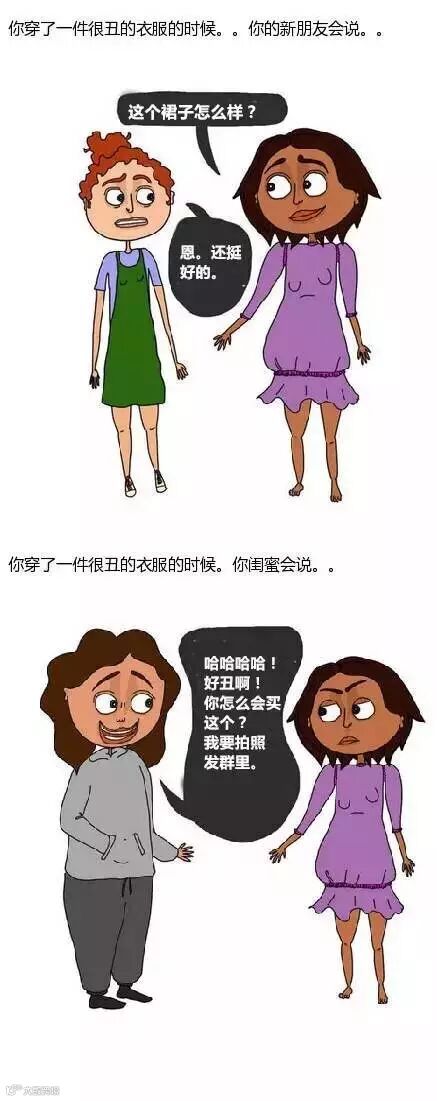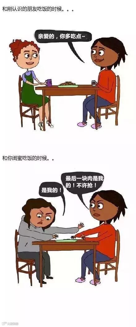 小编说,对下面这组图妹子深有体会!普通朋友见面都会互相夸奖,但是闺蜜一见面就损得你想下跪!这就是真友谊啊……