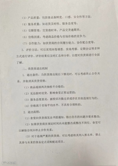 所有供应商需提供营业执照、食品生产许可证(厂家)或食品经营许可证(经销商)的复印件,并加盖公章或签字确认,首次采购时必须核验原件。