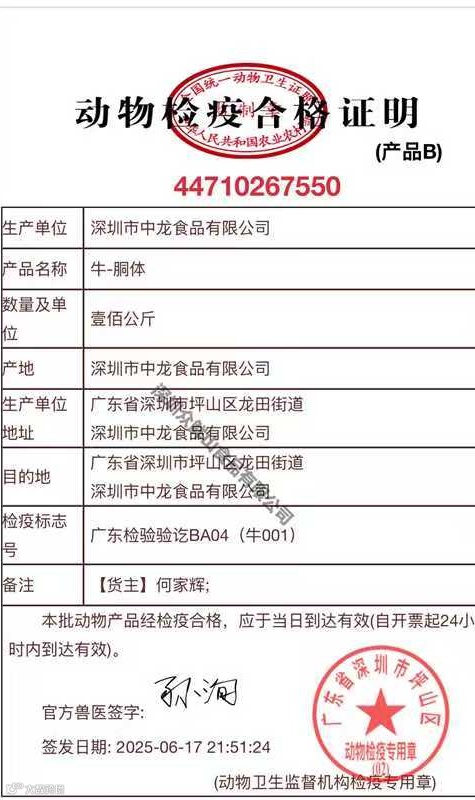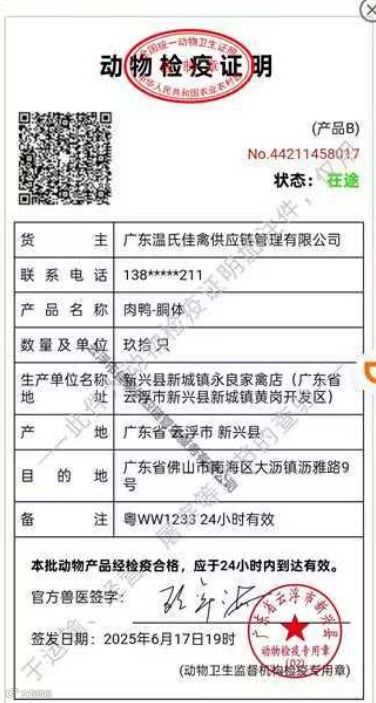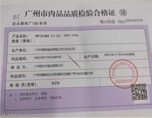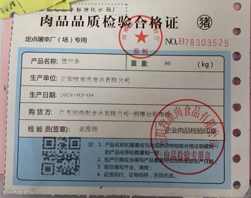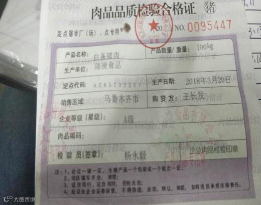 2.畜禽类:营业执照(身份证复印件)+动物检疫合格证明+供货清单(小票等)。索证时值得特别注意一点,要仔细检查动物检疫合格证明上的签发时间和到达有效时间,通常到达有效时间为24小时超过到达有效时间即认定为无效。