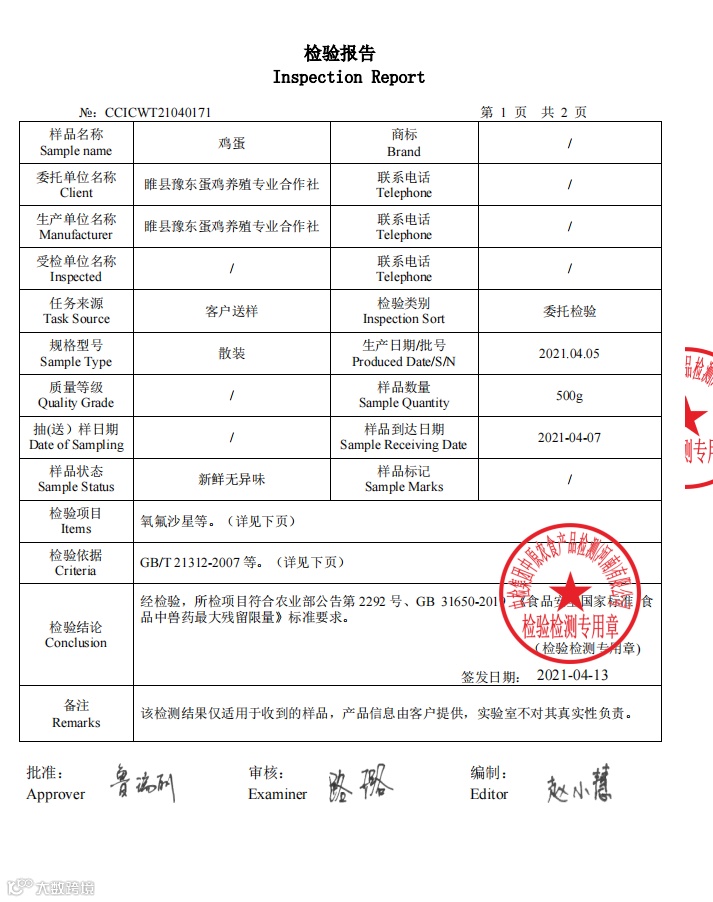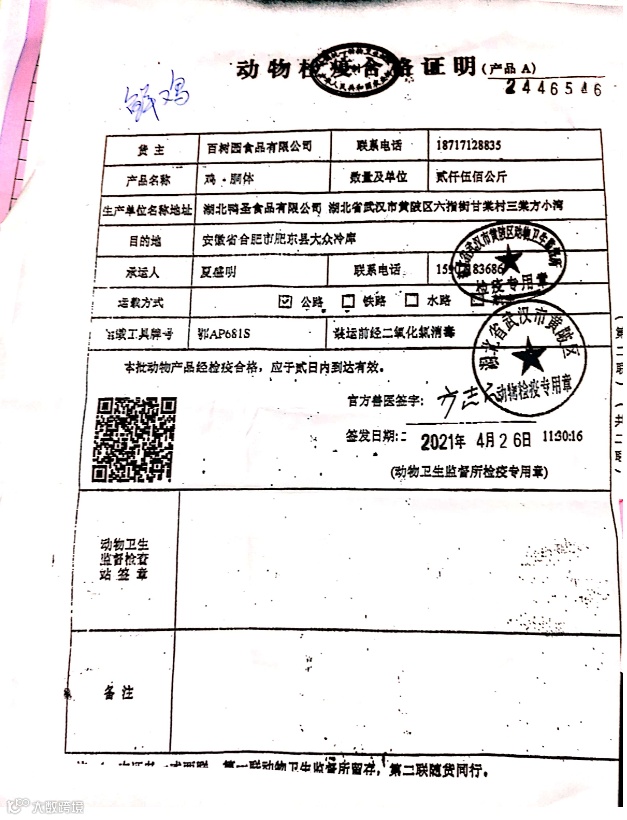 3.冻畜禽类:营业执照(身份证复印件)+动物检疫合格证明+第三方官检报告+供货清单(小票等)。