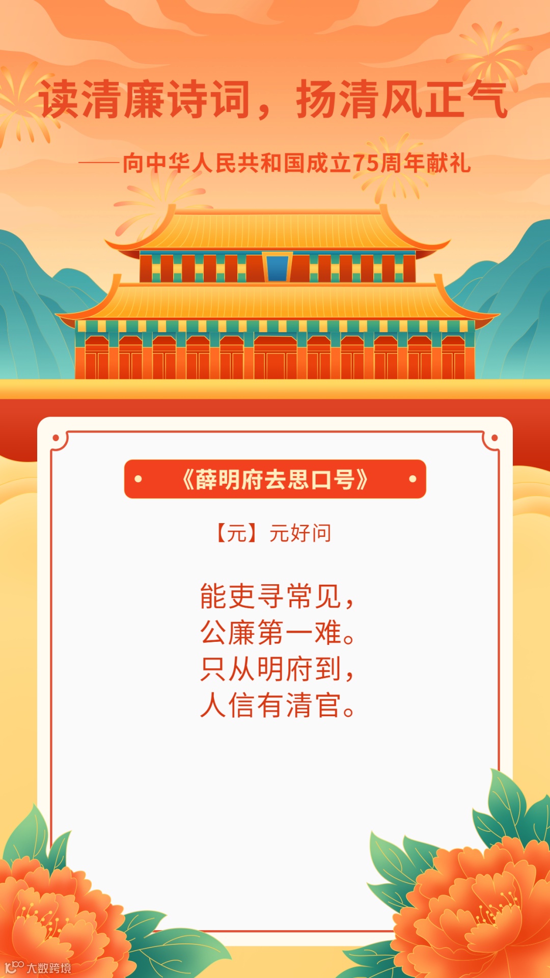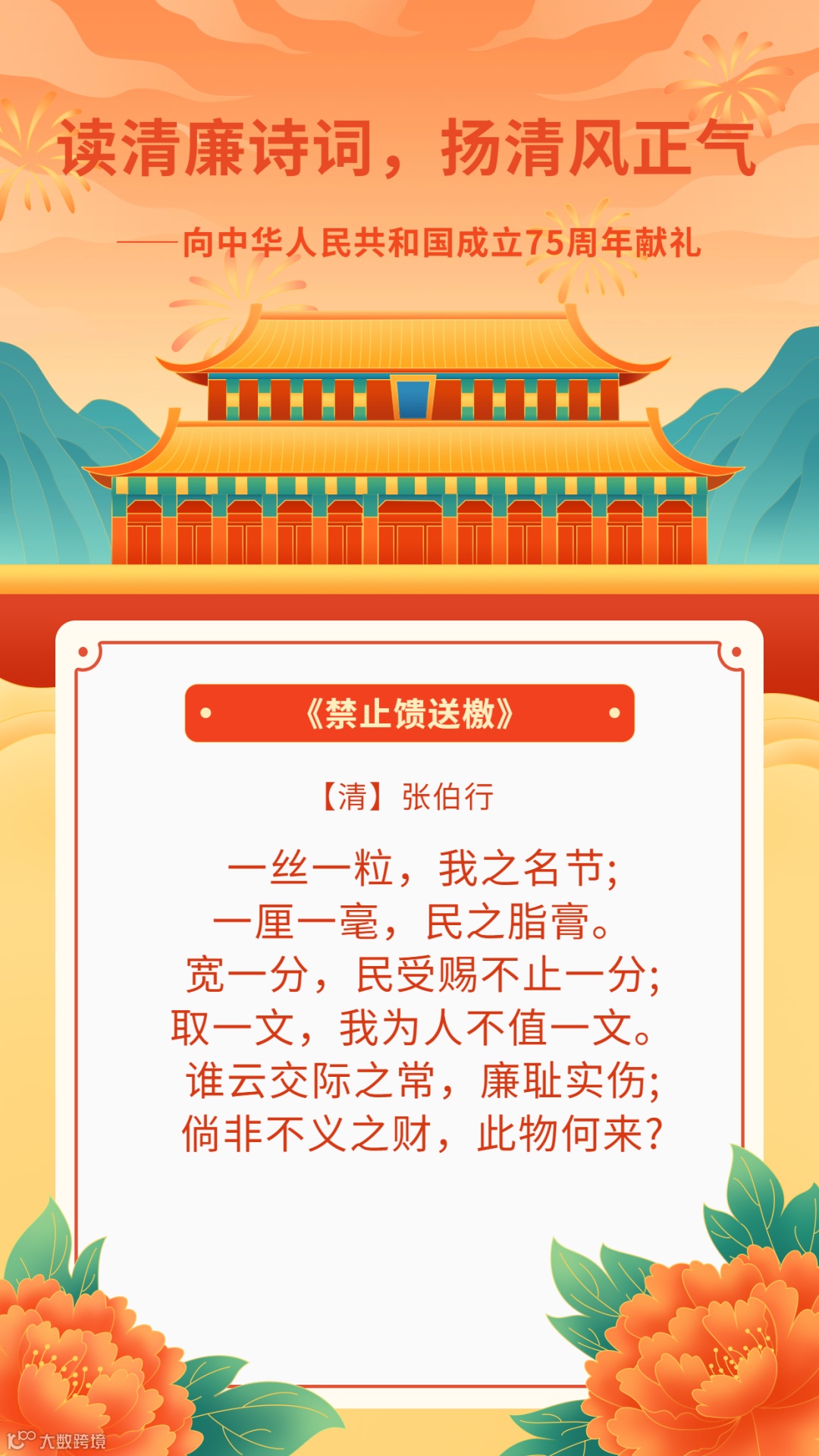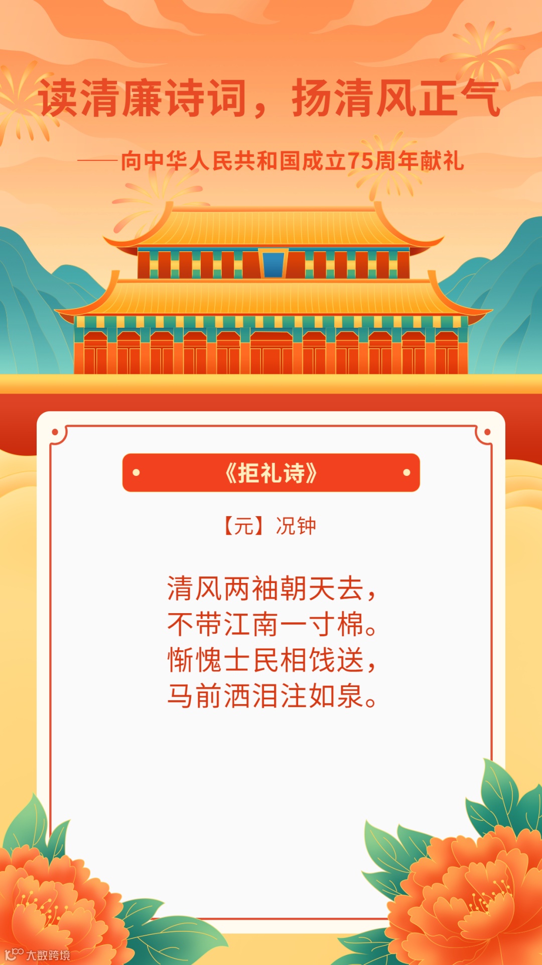 读清廉诗词,扬清风正气——向中华人民共和国成立75周年献礼