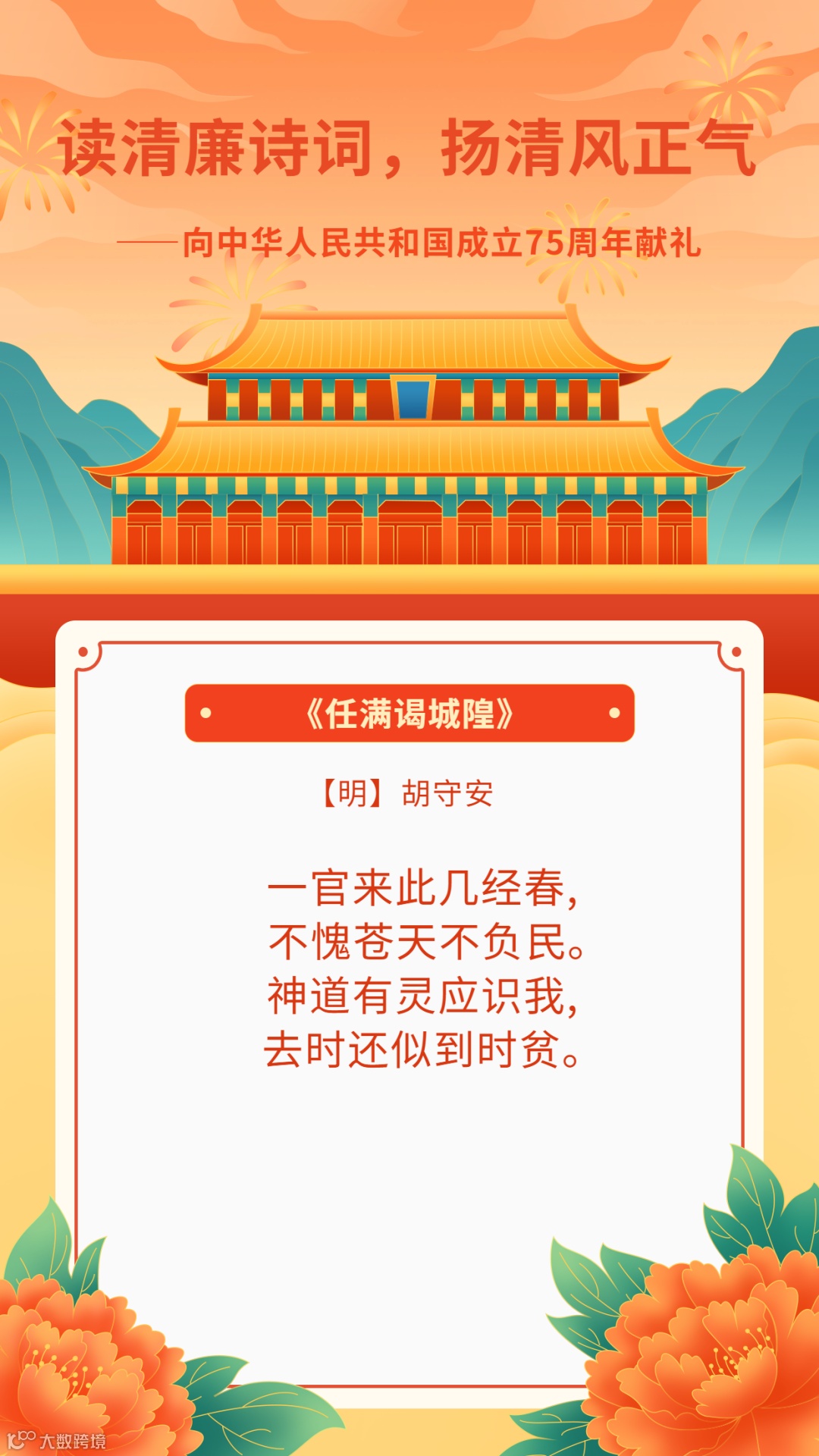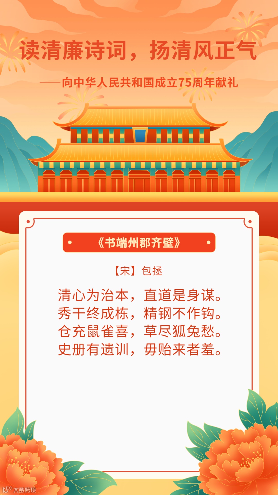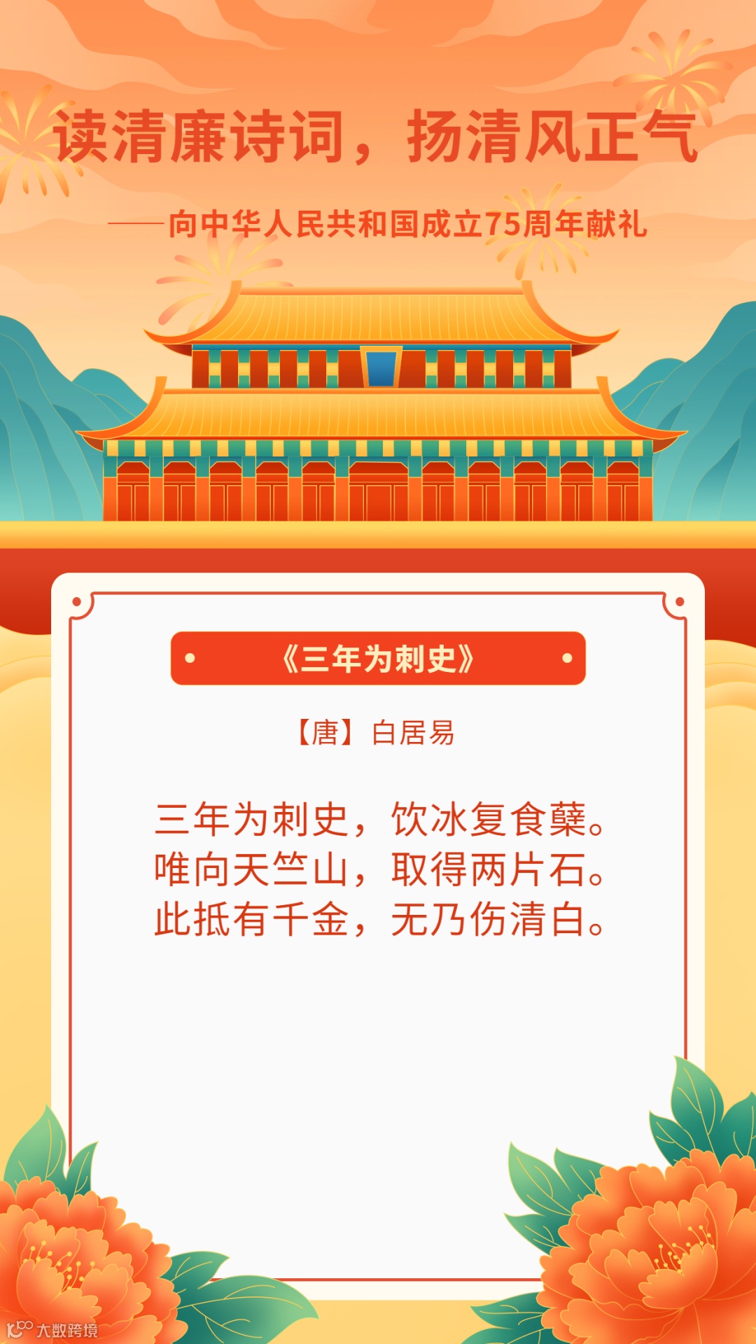 读清廉诗词,扬清风正气——向中华人民共和国成立75周年献礼
