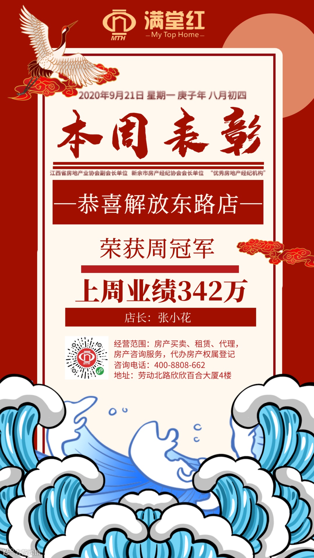 满堂红房产在2018年12月荣担江西省房地产业协会副会长单位,在2019年荣获江西省房地产协会年度先进会员单位,并在2019年成为新余市房产经纪协会会长单位,被选举担任首届会长。