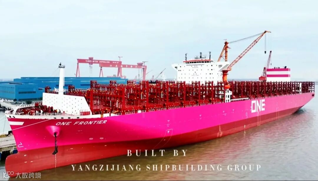 “ONE FRONTIER”轮总长366米,相当于5架A380客机的总和,型宽51米,型深30.2米,结构吃水16.0米,甲板面积相当于3个标准的足球场,最高处接近24层大楼的高度,是扬子船业集团新扬子造船建造的七艘15000TEU系列船中第四艘,也是新扬子造船建成的最大箱位集装箱船。