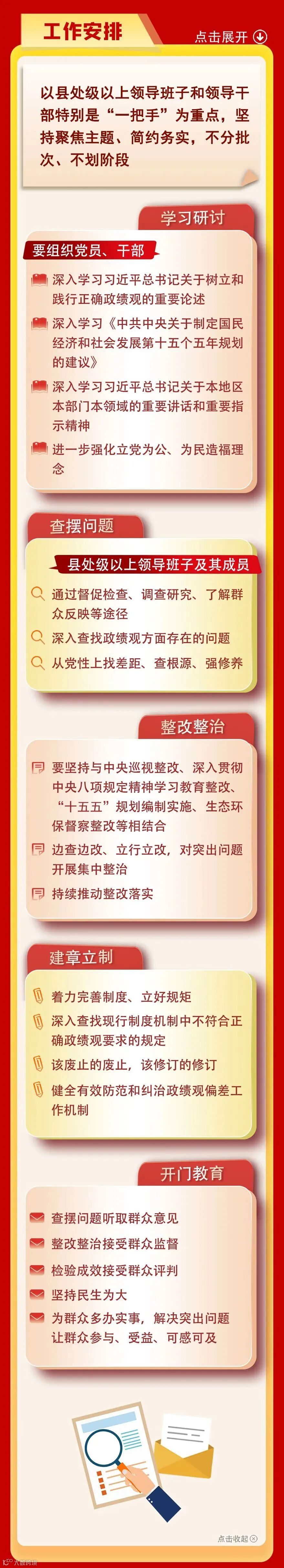 整理自《中办印发〈通知〉在全党开展树立和践行正确政绩观学习教育》《中央党的建设工作领导小组召开会议 研究部署树立和践行正确政绩观学习教育工作》