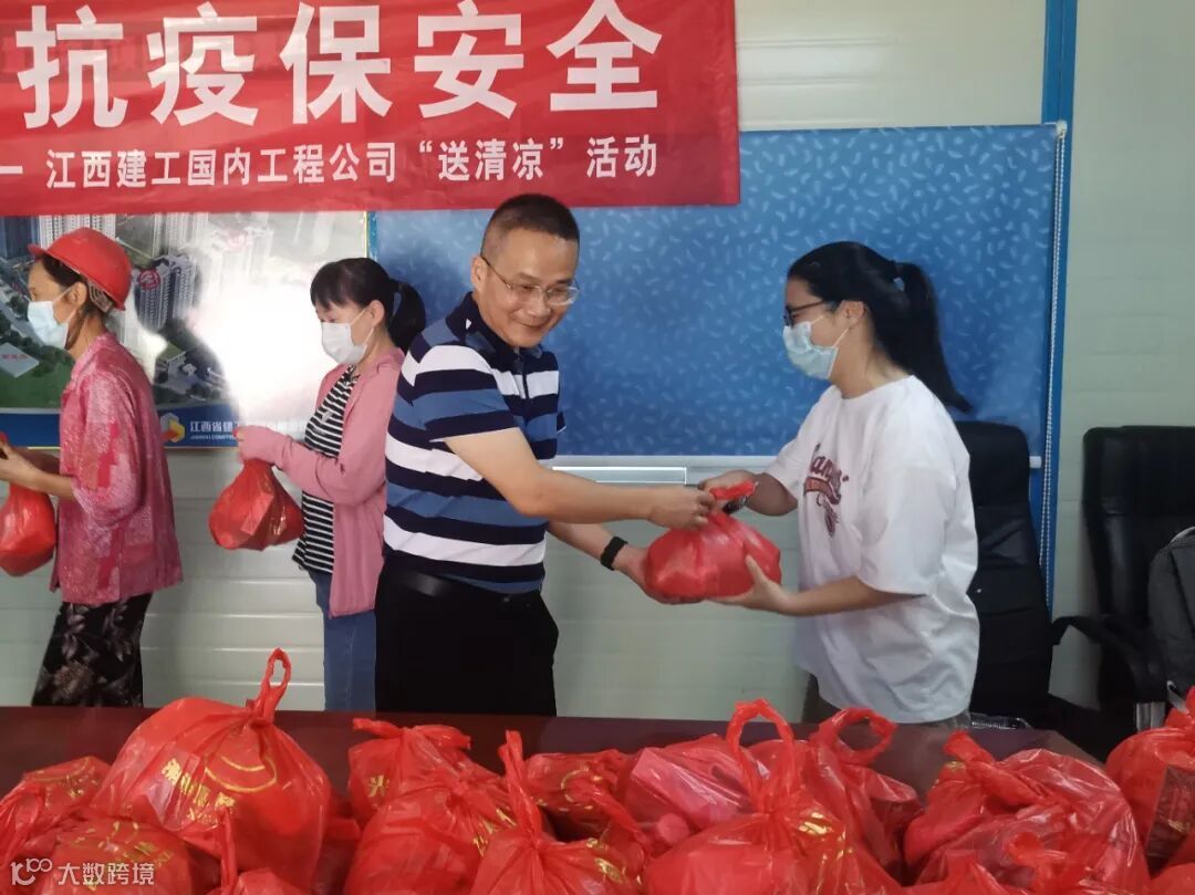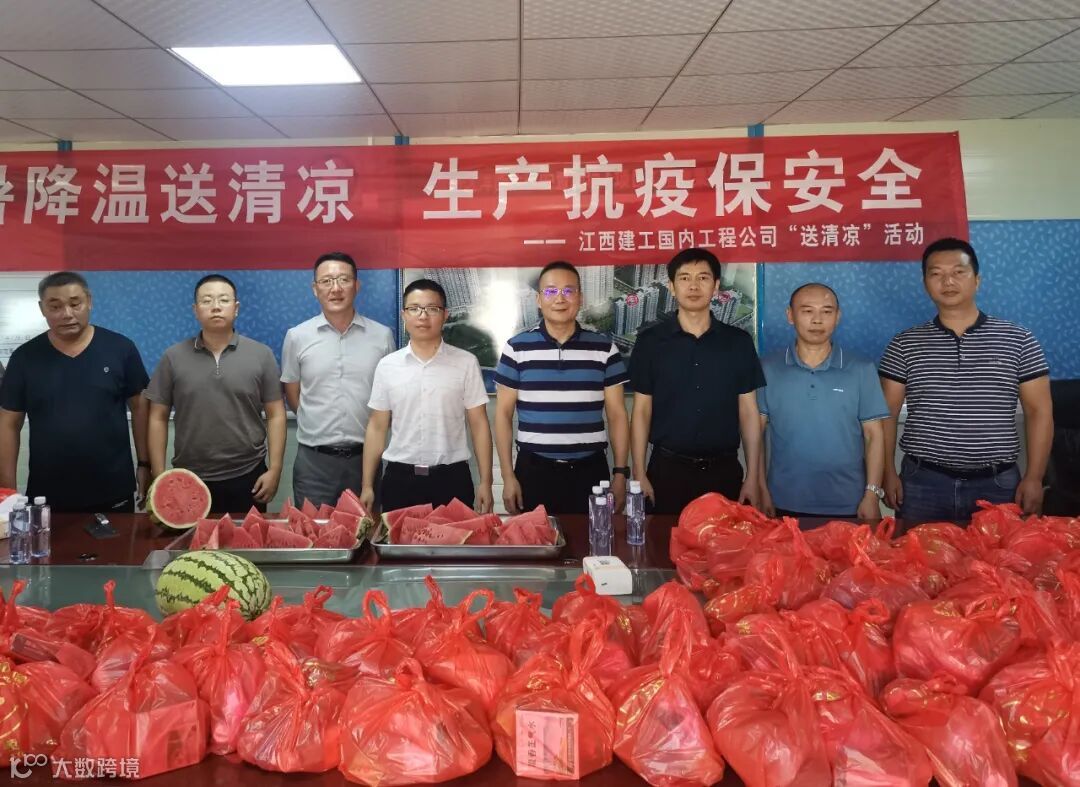 8月4日下午,江西建工国内工程公司党委委员、副总经理胡长征,总经理助理袁风林来到福建省莆田市城厢区洋西片区安置地块A项目工程,慰问高温下坚守岗位的一线员工,并为他们送去清凉“大礼包”。