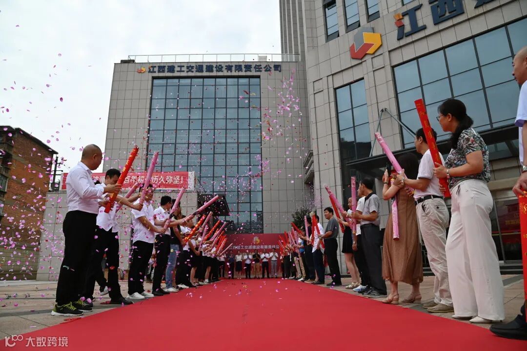 江西建工第一建筑有限责任公司党委书记、董事长唐勇,党委副书记、总经理龚永林与江西建工交通建设有限责任公司董事长邱志明为“江西建工交通建设有限责任公司”揭牌。当红色绸缎被拉开时,“江西建工交通建设有限责任公司”闪亮招牌缓缓呈现,现场顿时掌声喝彩声交织、电子花炮欢鸣、金纸礼花绽放,全体嘉宾、干部职工以无比喜悦的方式祝福“江西建工交建”精彩起航。