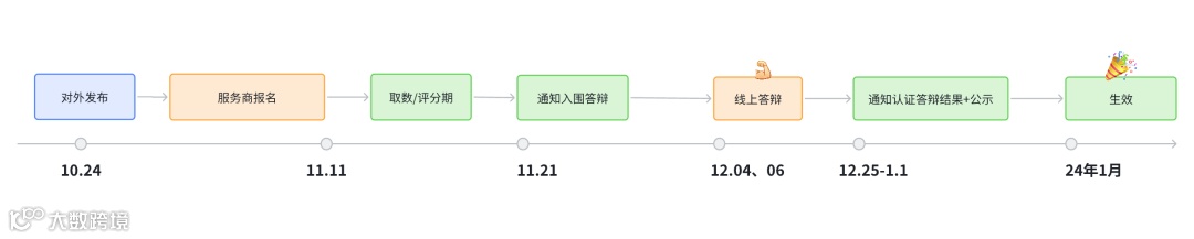 本期23年11月评选、12月公布,有效期2024年01月-2024年06月;下期服务商认证答辩预计24年5月份开启