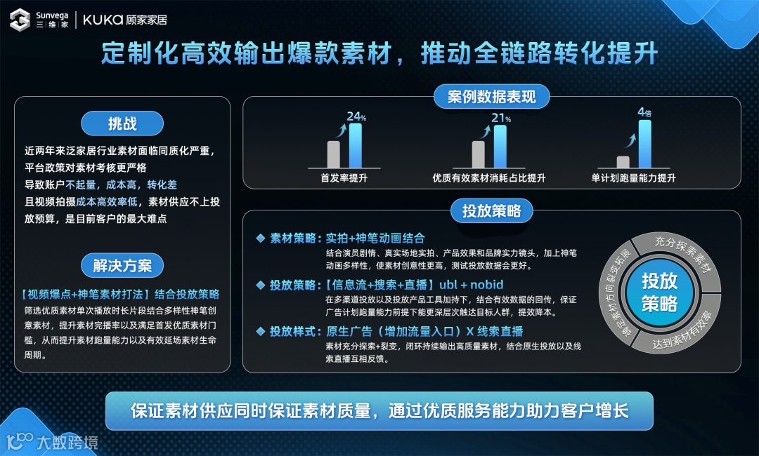 让真正的好素材成为跑量素材,助力广告主、代理商依靠好创意获得好回报,引领效果广告行业新趋势。
