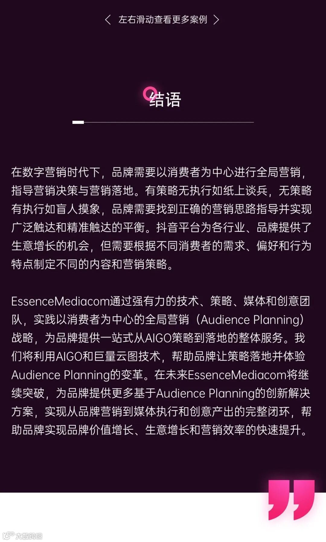 导读:群邑EssenceMediacom基于巨量云图推出AIGO智能增长模型,点击获取完整白皮书~