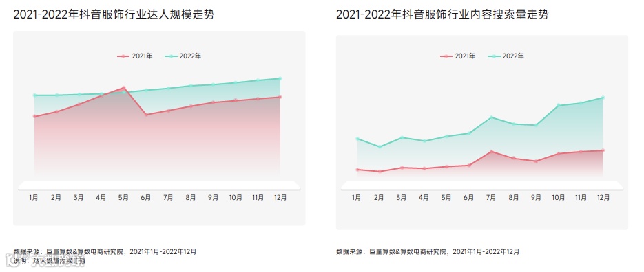 服饰行业与每个人的日常生活息息相关,行业营销也更倾向于贴近用户生活的内容营销。目标用户对于内容源源不断的需求让抖音平台商家、达人的创作更丰富多元。截至2022年12月,抖音时尚达人总数突破5万人,达上年1.2倍,时尚达人、博主等是时尚内容的核心层创作者。