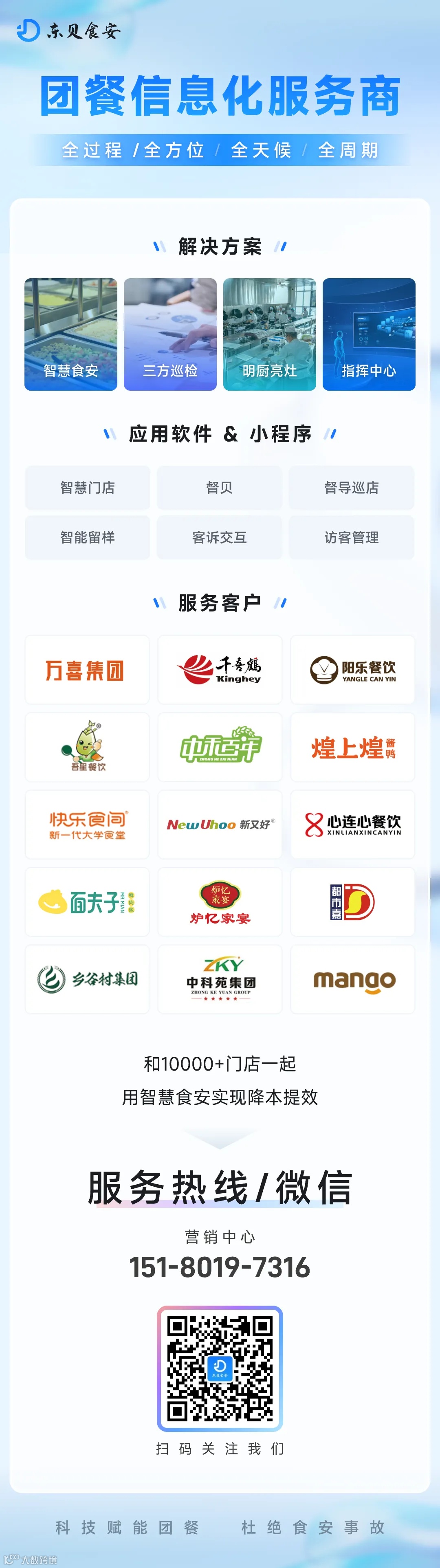 未来,东贝食安将将继续加强技术创新和产品研发,全面完善高校食堂全场景信息化食安建设,充分发挥信息技术在高校食安管理中的先导作用,全方位引领校园后勤食安管理数智化转型,让中国校园食堂实现“智能化、多维度、全覆盖”的智慧食安监管!