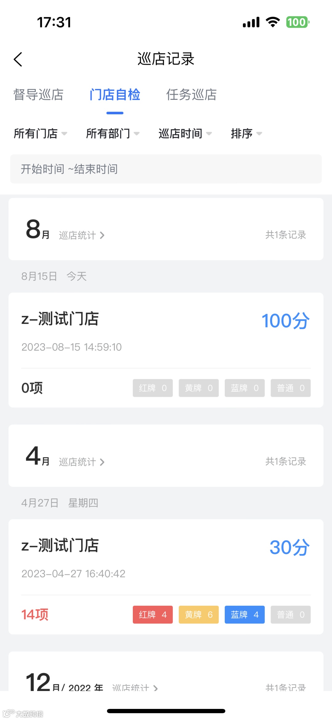 督贝系统门店自检功能,支持自检表每一个点项都能打分、上传图片,同时必须填完才能够上传,保证数据无遗漏,待店长签字自动汇总生成报告。同时,自检报告可转发或抄送给上级领导,供其进行决策与整改,保障整体自检效率提升 50% 以上。