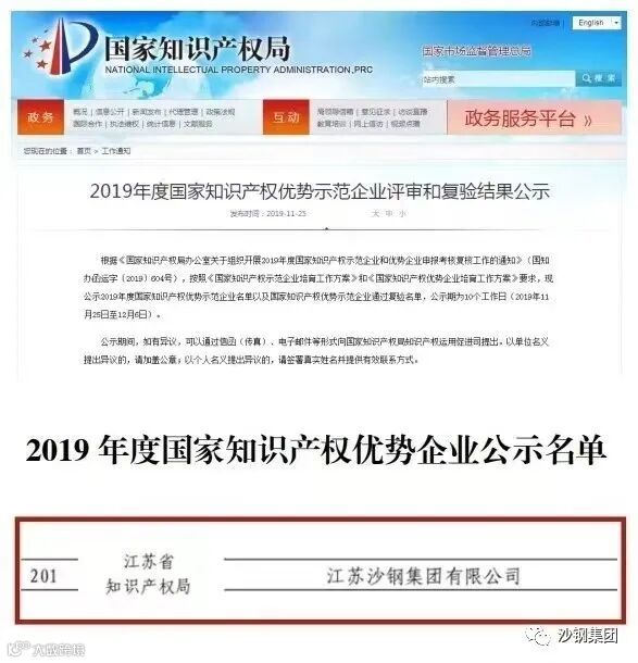 沙钢承担江苏省企业知识产权战略推进计划项目,现已顺利通过验收,同年沙钢钢铁研究院获批承担苏州市高价值专利培育计划项目。