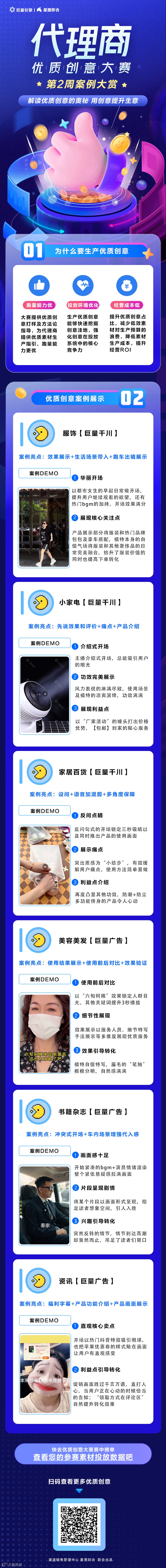 由 渠道销售管理中心和 星图即合 联合举办的「代理商优质创意大赛」持续进行中,本周上榜6例优质创意素材,聚焦服饰、小家电、家居百货、美容美发、书籍杂志和资讯等类目。