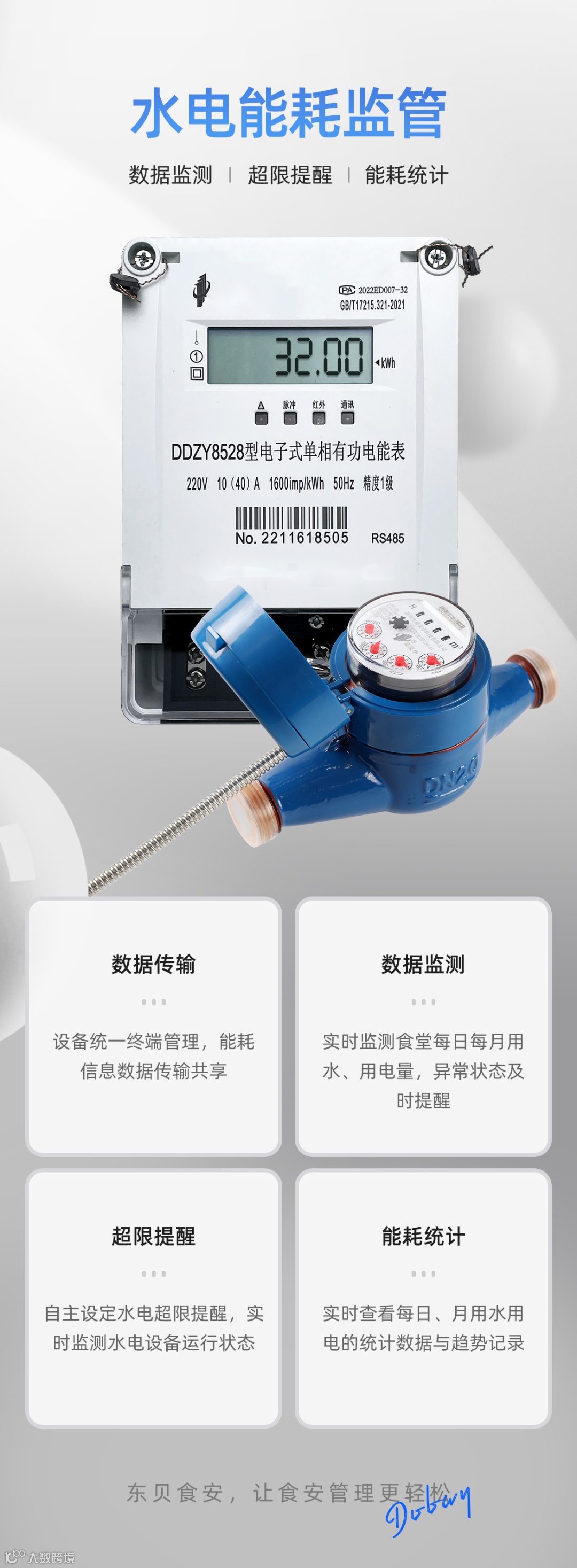 东贝食安后厨水电能耗管理系统建立和应用,可帮助学校食堂全面提升水电能耗信息化、数字化管理,为能耗数据的采集统计、规律分析管理提供了重要依据,同时助力实现能耗“双控”目标!