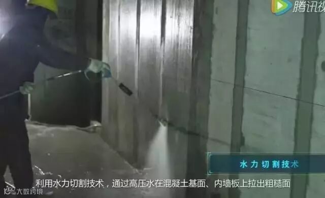 利用水利切割技术,通过高压水在混凝土基面、内墙板上拉出粗糙面,实现表面快速拉毛,减少基层残余浮浆、脱模剂等产生空鼓的质量隐患。大幅提高墙砖粘结力和砖墙铺贴质量。