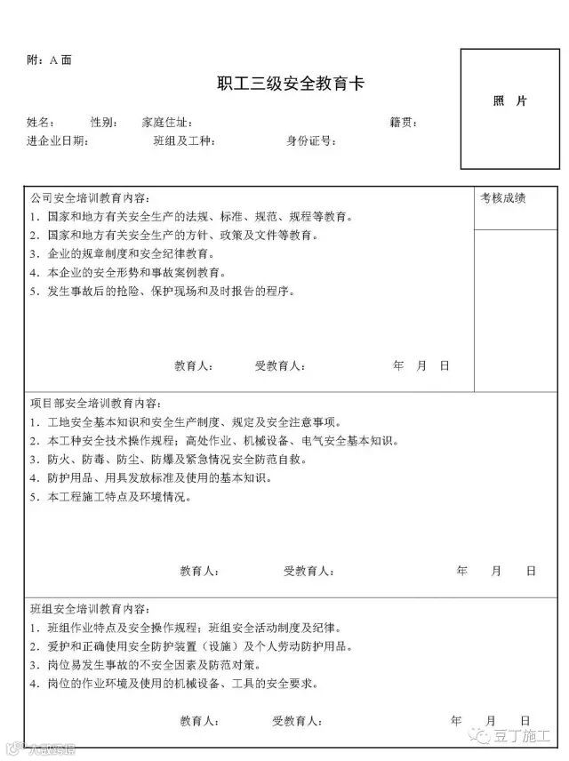 6.安全教育档案应一人一档。档案应收集其身份证复印件、三级教育考卷、三级教育卡片和安全责任书,装订成册,妥善保管。