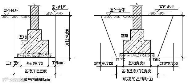 为保证工人的正常操作,基底宽度应在基础宽度的基础上增加工作面宽度2C。