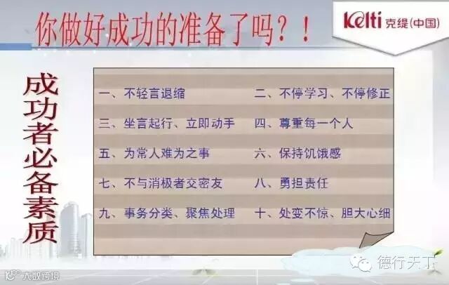 我们从事克缇有一套成功的系统,不需要你有经验,不需要研发,不需要创新(因为我们有专门的研发团队),你只用按照这套成功的系统去运作,通过你的辛勤付出就一定能够走向成功。