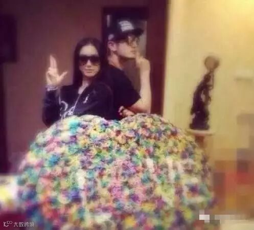 七夕时,黄晓明为baby准备了上千多彩色玫瑰花,拼成大大的桃心,配上“love”字样,非常的浪漫~