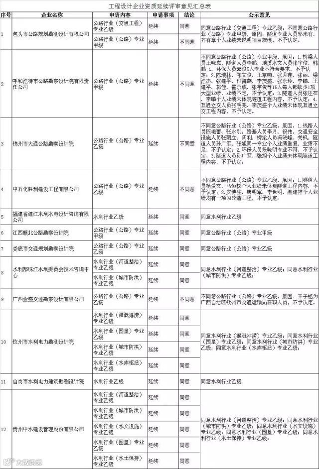 关于建设工程企业资质审查意见的公示