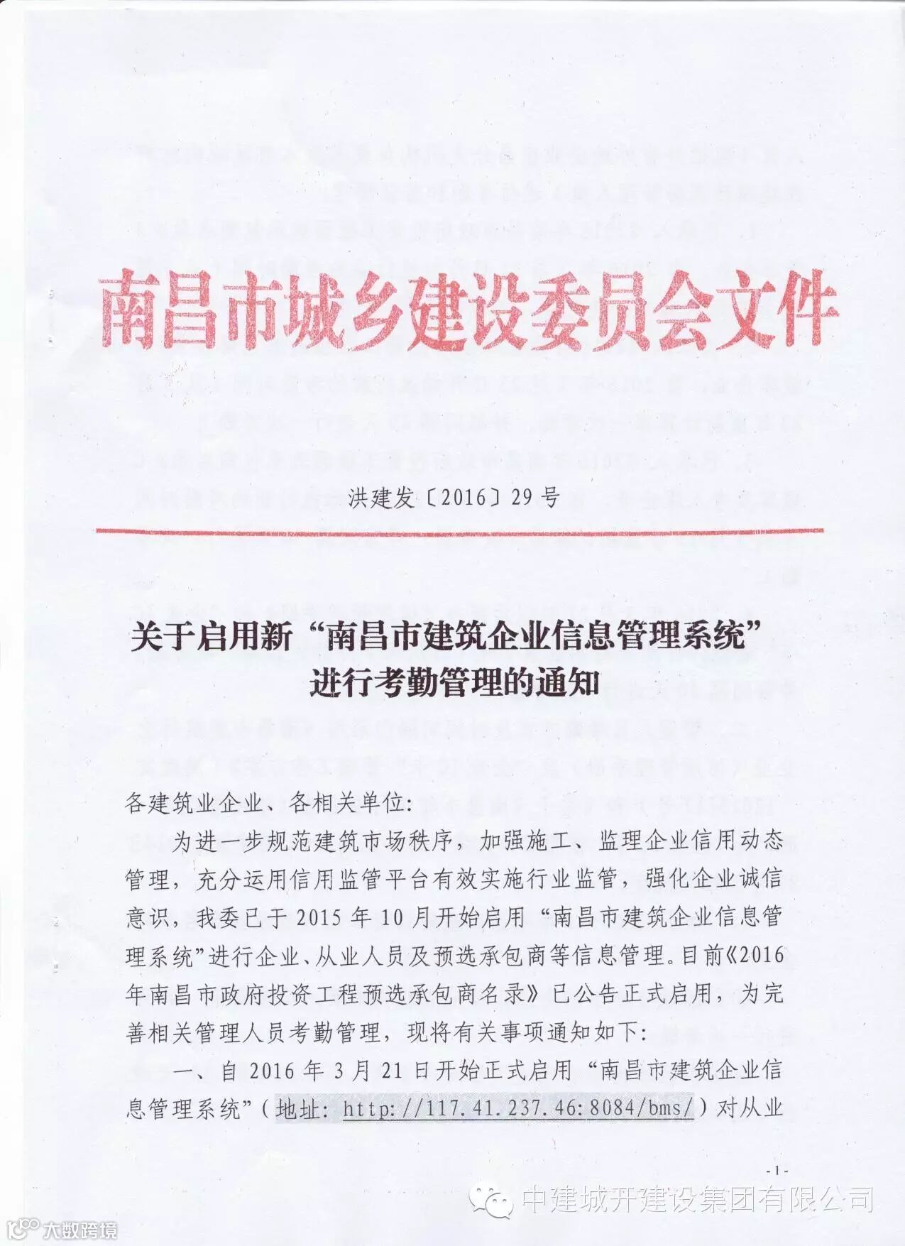 关于启用新“南昌市建筑企业信息管理系统”进行考勤管理的通知