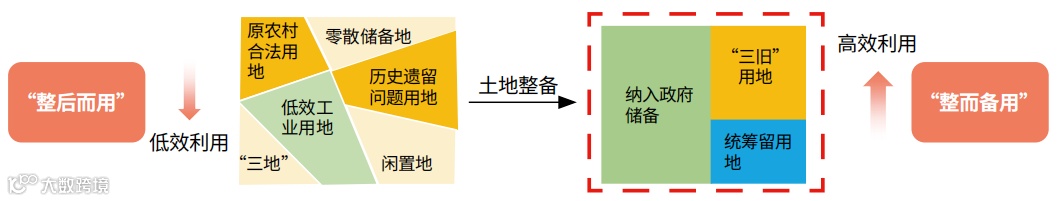 土地整备与城中村改造密切相关。2011年,深圳市在全国范围内首次确立土地整备制度。同年,深圳市坪山新区率先在南布、沙湖等社区改造中先行先试“整村统筹土地整备”。城中村改造土地整备以政府为主导,对改造范围内的单个或多个权属人的存量土地进行整合清理,并综合运用土地整合归宗、协商收购、置换等措施,对零散低效用地进行整合、清理和再开发,以促进土地达到成片连片改造条件。其主要目的是解决城中村改造历史遗留问题,并盘活存量低效无效用地。